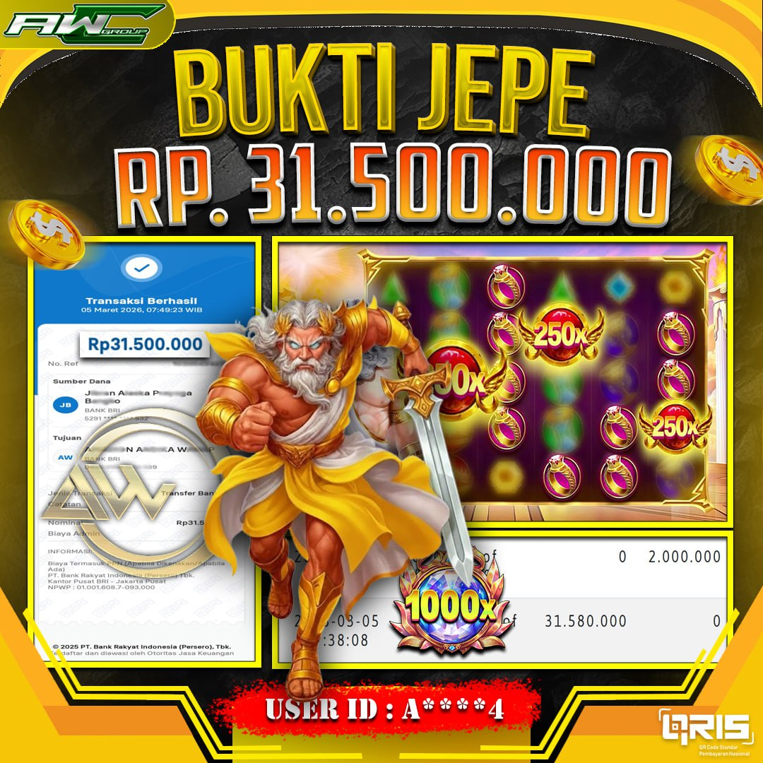 ID : A****4 JACKPOT PAUS DI SLOT PRAGMATIC PLAY NAMA GAME : GATES OF OLYMPUS 1000 TOTAL WITHDRAW : 31.500.000